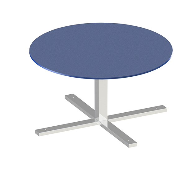 Table circulaire, robuste et stable, plateau Ø 1500 mm hauteur 780 mm, spécialement adaptée à l’accès fauteuil PMR.